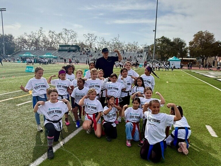 More than 100 girls filled the field at Palo Alto High School with energy and excitement as Sutter Health, Pro Football Hall of Famer Steve Young and the Forever Young Foundation kicked off the first girl’s youth flag football camp on Saturday, Jan. 31. The event marked a major step forward in expanding youth health, wellness and play opportunities across Northern California.